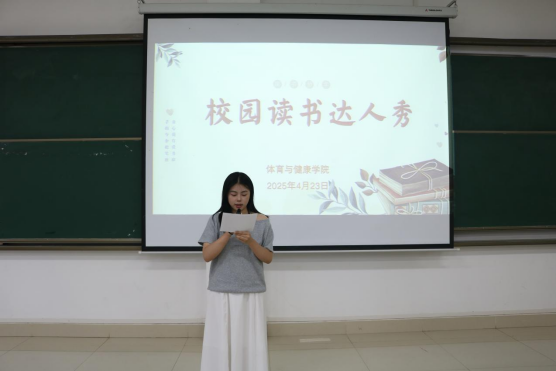 本次活动内容丰富多样,亮点纷呈。“校园读书达人秀”活动为同学们提供了一个交流读书心得的平台。通过前期精心组织及各位同学积极报名,在4月23日活动当天,共有13名同学站上舞台,分享了自己近期阅读的好书、精彩段落以及阅读后的收获和感悟。康疗23-1班李正路分享了莫言的散文集《不被大风吹倒》,传递出“即使凤再大,也要站稳脚跟”的坚韧精神。社体23-1孙浩分享了路遥创作的长篇小说《平凡的世界》,展现了平凡人在面对现实的压力与挫折时,坚韧不拔、努力奋斗的历程。社体24-4封曼妮分享了《青春的可能》这一篇充满时代力量的青春赞歌,以当代青年的奋斗身影为缩影,展现他们与时代的“双向奔赴”。其余选手也以充满感染力的讲述分享着精心准备的精彩内容。这一过程中,思维的火花不断碰撞,让现场同学们得到一次崭新的精神洗礼。