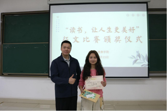 此前,“读书,让人生更美好”征文比赛活动同样在校园内掀起了一股写作热潮。同学们纷纷投稿讲述自己与书结缘、读书改变自我的故事。征文比赛面向全院员工,在活动时间内共收到征文60余篇,通过评比,康疗22-1班孙蕾《以书为翼 医路翱翔》获得一等奖;康疗23-1聂军楠《人生引路星-书籍》、康疗22-1耿欣雨《书页间的魔法宇宙:在阅读中遇见生命的无限可能》获得二等奖;康疗22-1严天芳《在阅读中品情》、康疗22-2邓兰《执书卷 阅人生》、康疗22-2梁丽华《以书为笔 书写美好人生》荣获三等奖;康疗22-1陆彩钰《品红楼万象 悟人生真理》、社体24-1罗占英《书—我的白月光》等获得优秀奖。