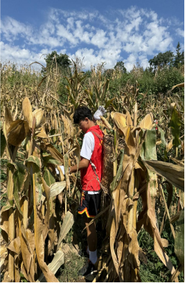 到达目的地后,团队成员迅速分成掰玉米及摘辣椒两只队伍。队员们首先向村民请教采摘技巧,随即现学现卖、活学活用,开始工作起来。35度的高温下,志愿者们头顶烈日摘辣椒,身背箩筐掰玉米。即使汗流浃背,肌肉酸痛,也阻挡不了他们帮助村民的热情。在团队成员们的共同努力下,大家只用一个小时就全部完成采摘任务。村民对志愿者的表现连连点赞,“非常感谢你们能来帮忙,平时我一个人做这些事,实在太吃力了。”