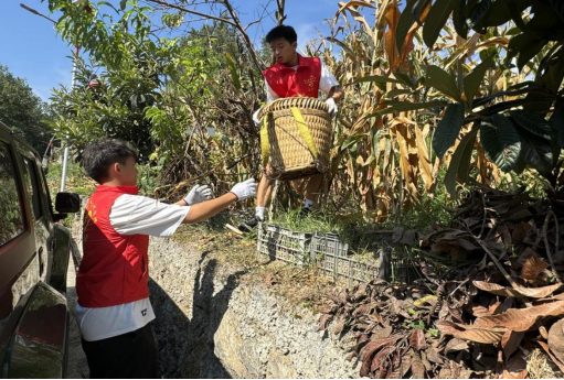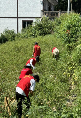 志愿者们头顶烈日摘辣椒,身背箩筐掰玉米