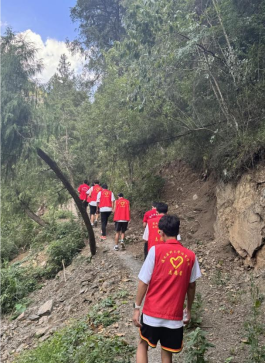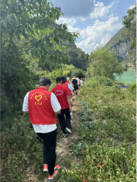 志愿者徒步翻山越岭
