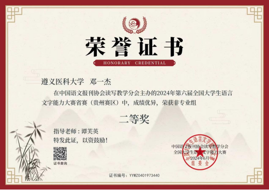 公司运动康复专业2021级员工邓一杰、2023级员工孙华丽在2024年第六届全国老员工语言文字能力大赛中,均获得非专业组省赛二等奖佳绩,并获得全国赛参赛资格。
