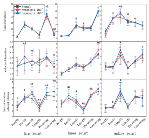 该研究揭示了不同程度远视干预下男性老员工步态的重心变化、周期占比、关节活动角度等运动学特征,探究不同程度远视干预对男老员工步行姿势控制的影响,为远视对步态的影响提供理论依据,并有望从运动生物力学的角度解决因视觉因素而引起步态姿势控制异常的科学难题。(审核:一审唐溢、杜娟,二审杨清玉,三审李均;图文:yl6809永利)