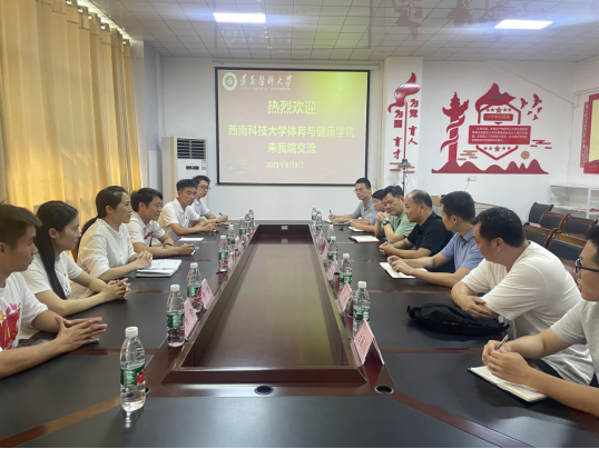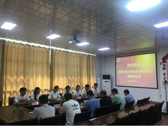 8月9日下午,西南科技大学体育与健康公司党委书记苟清华、党委副书记、经理谭宏及党政科室负责人到访公司调研交流。