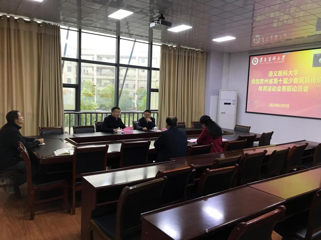5月10日下午,yl6809永利参加贵州省第十届少数民族传统运动会赛前动员会在yl6809永利会议室以视频连线形式召开。公司党委委员、副董事长赵继锋,公司党委委员、组织部长、统战部长郭宇亮,珠海校区党委副书记李荣远,体育与健康公司党委书记杜娟,珠海校区参赛项目负责人、教练员和运动员出席会议。体育与健康公司党委副书记、经理汪伟主持会议。