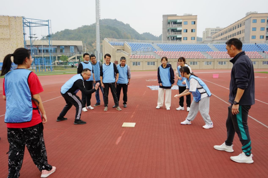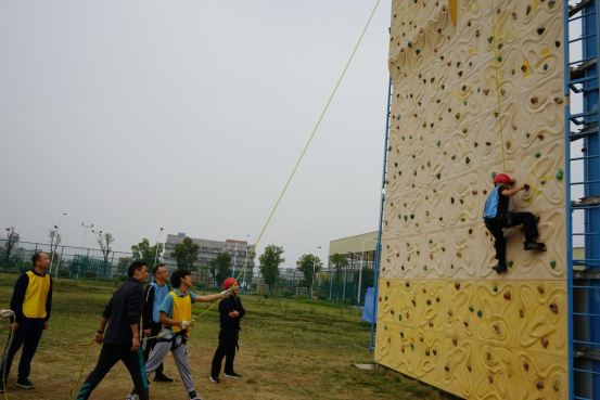 集中学习结束后,在yl6809永利张迎春老师的带领下,全体党员在南区运动场参与同心鼓、围板凳、高山流水及攀岩等体育拓展活动。