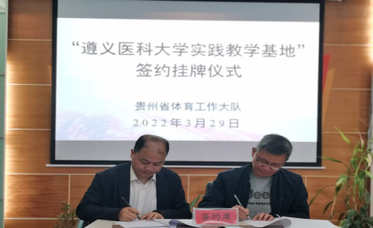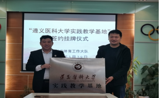 双方均表达了在未来的合作中,进一步增进友谊,把科研、教学、实习等相关工作做实、做细、做好的良好愿望。覃卫大队长代表大队、汪伟经理代表遵医共同签署了《运动康复专业员工实践教学基地合作协议书》,张继东副经理代表遵医向大队授予了“yl6809永利实践教学基地”的牌匾。
