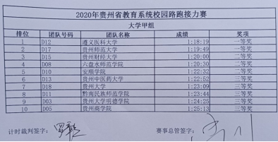第一棒:申万酉2017级预防医学14分11秒/3.5km 第二棒:高东红2019级药学12分08秒/3.5km