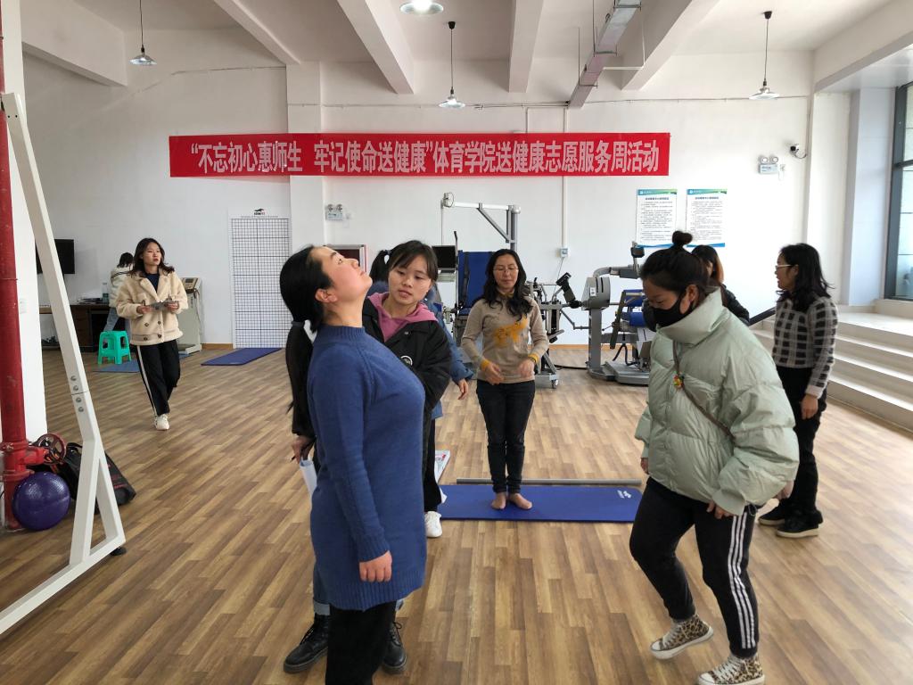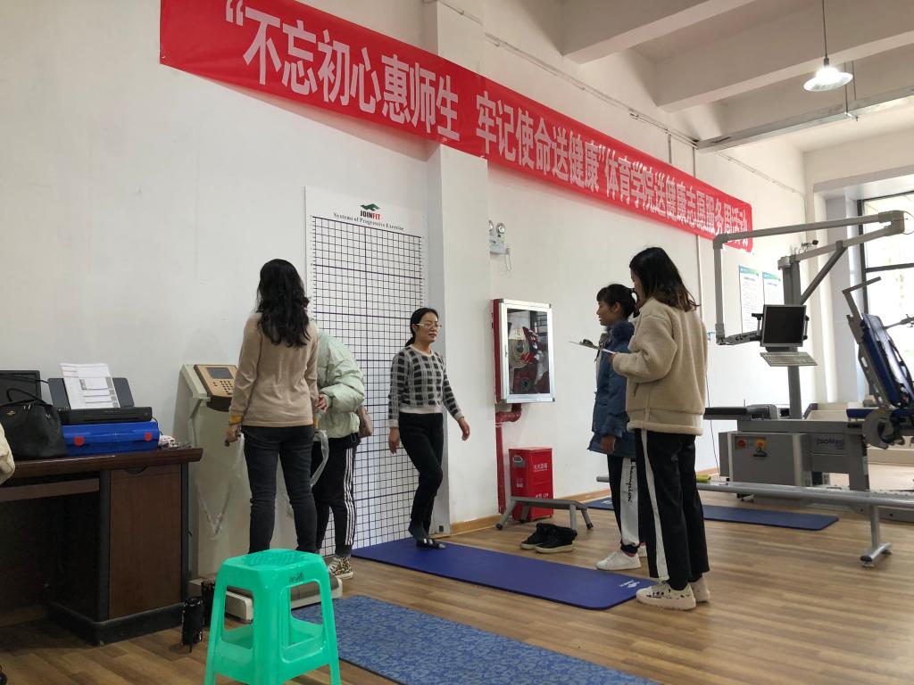 体育公司以“不忘初心惠师生、牢记使命送健康”志愿服务活动为载体,由该学科博士团队领衔,以运动康复专业员工为主力军,面向全校教职员工生,开展以身体成分测量与分析,身体形态分析,SFMA选择性功能动作筛查、FMS功能动作筛查,国民体质测试等健康筛查;服务模式为一对一指导与分析。主要解决的是教职员工长期伏案工作、颈椎病、姿势异常、腰肌劳损以及运动损伤等常见问题。此次活动的开展,让广大师生对自身的健康水平、健康生活方式的普及,以及影响健康的主要因素得到全面了解。