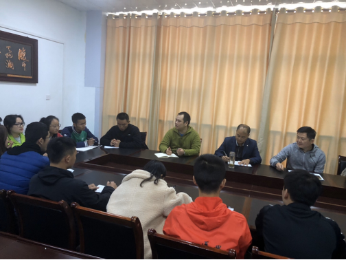 2019年11月5日中午,围绕“不忘初心、牢记使命”主题教育的相关要求,结合公司员工工作开展的实际需要,体育公司召开员工工作调研座谈会。公司总支书记汪伟、公司副经理黄涛,辅导员邹昕、肖伟以及体育公司各班班长和学习委员参加了此次会议。