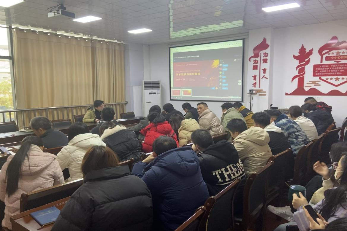 根据省学位办和公司关于做好《中华人民共和国学位法》(以下简称《学位法》)学习宣传和贯彻落实工作的通知,为加强《学位法》学习宣传、落实主体责任,做好实施准备等工作,yl6809永利于2025年1月11日组织开展《中华人民共和国学位法》专题学习研讨活动。yl6809永利全体教职工参会。