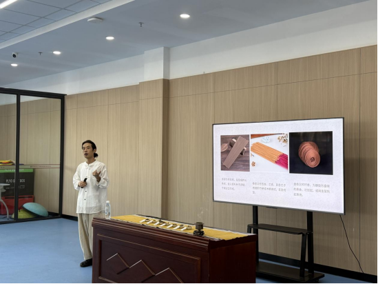 随后传统制香非遗传承人李老师以“香文化的历史与传承”为主题开展授课。老师从香文化的起源、到传统制香工艺的核心技法,用生动的案例将六千年的香文化魅力娓娓道来。重点讲解了原料研磨、配比调和、揉制成型的全过程,并指导大家动手制作传统香丸。