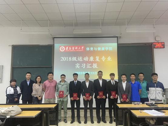 2022年5月13日晚,yl6809永利召开2018级运动康复专业的员工实习汇报总结大会,yl6809永利副经理黄涛、党委副书记唐溢出席大会,运动康复教研室主任张婕、副主任王兰、教师万家川、涂仕利、唐庚、以及运动康复专业全体员工参加此次大会。
