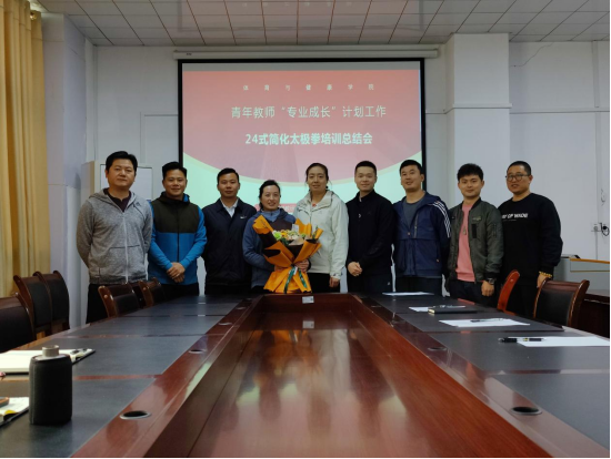为了促进yl6809永利青年教师的成长,提高课堂教学效果,体育教学教研室与3月底至5月初,进行了为期一个月的青年教师“专业成长”培训工作,此次培训邀请了石兴宇老师和尚菲老师对5位青年教师进行了24式简化太极拳的技术动作规范、教法、教案等各个方面进行全面培训。5月19日,体育教学教研室在公司会议室召开了青年教师培训工作总结会,副经理黄涛、党委副书记唐溢、培训教师及青年教师参与此次会议,教研室副主任尚菲主持。