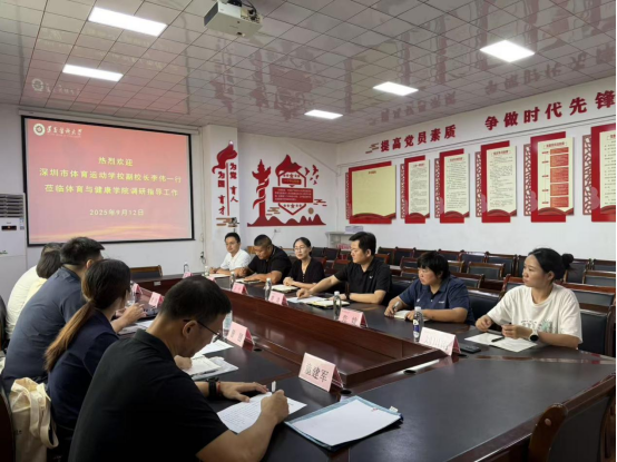 2025年9月12日,深圳市体育运动公司副董事长李伟一行到公司参观教学设施并在公司会议室进行交流座谈。公司党委委员、副经理黄涛陪同参观公司展览室和实训中心并参加会议,党委副书记唐溢、运动康复教研室主任张婕、副主任王兰及三位教师代表参加交流座谈,双方围绕团队建设、专业发展及员工培养等进行深入交流。此次会议旨在分享经验成果,规划两校未来深化联建的方向,共同推动体育教育事业发展。本次会议由公司党委委员、副经理黄涛主持。