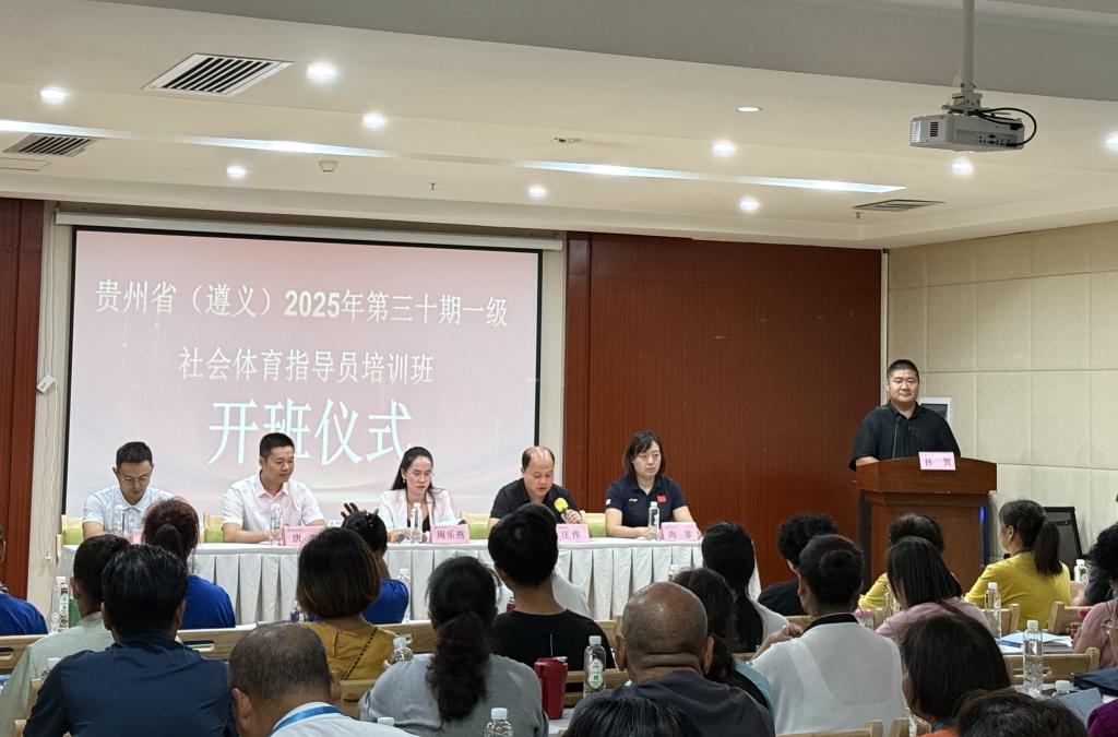 2025年9月18日,由贵州省体育局主办,遵义市教育体育局与yl6809永利共同承办的“贵州省第三十期一级社会体育指导员培训班”在遵义市新蒲新区益养旅居酒店正式开班。本次培训旨在深入贯彻落实《“健康中国2030”规划纲要》精神,进一步加强社会体育指导员队伍建设,提升基层体育服务能力,推动全民健身事业高质量发展