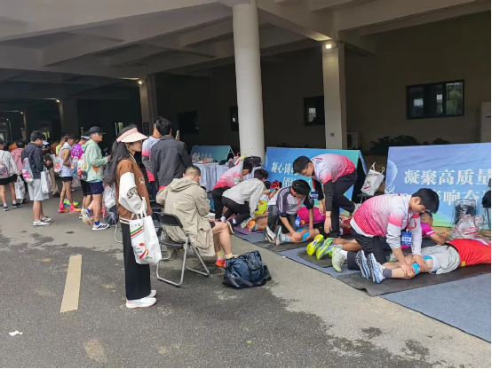 凌晨天还未亮,公司的志愿者队伍就已经集合出发,在到达指定岗位后,立即开始紧张的准备工作。比赛开始前,领操员在各个点位带领广大跑者跟随音乐的律动充分热身;发令开跑后,公司啦啦队在沿途为选手加油呐喊;在赛事终点处,运动康复队队员用专业的拉伸技术和熟练的手法为运动员们提供赛后放松服务。他们热情的呐喊和专业的服务成为赛事中一道亮丽的风景线。