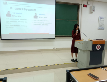然后,两位优秀的员工干部进行了经验分享。22级2班团支部书记杨巧钰从团支部基本情况、组织建设、思想引领、活动开展到取得的成绩,全方位呈现了团支部工作的扎实开展,并分享了获得校级“十佳”团支部书记“的经验。23级3班心理委员刘梦月结合日常心理健康工作,分享了获得校级优秀心理主题班会、校级优秀心理委员的经历,为各班心理委员提供了工作思路和参考。