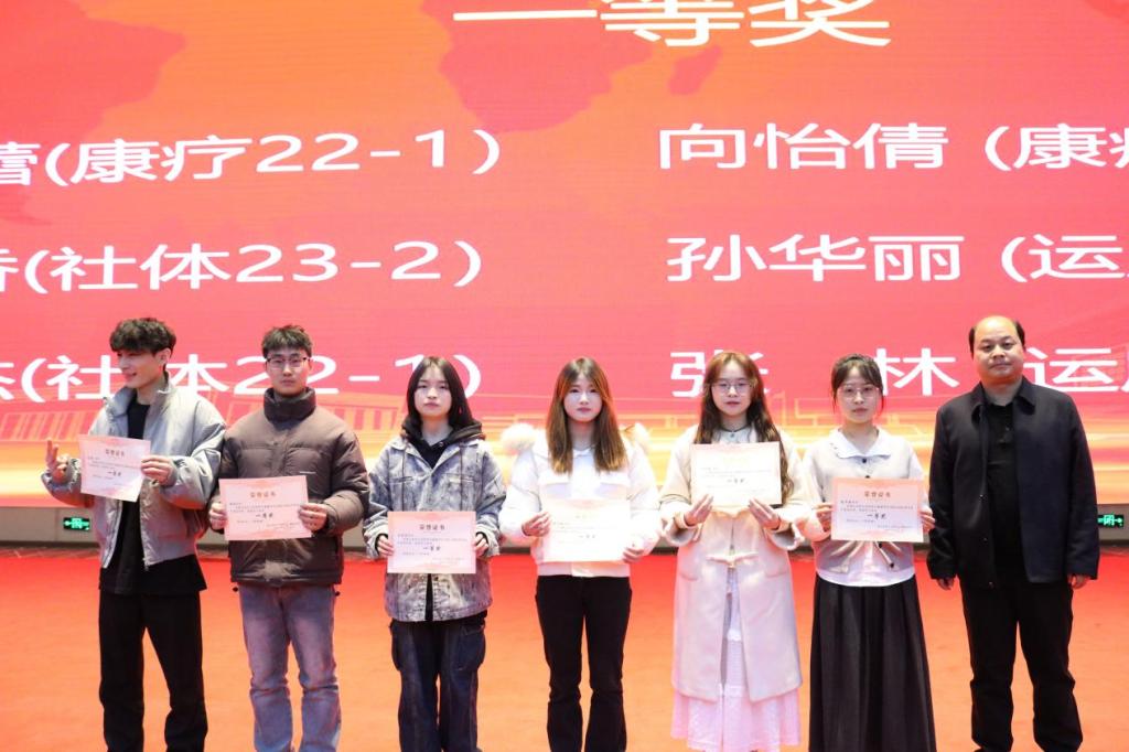 一等奖:孙蕾(康疗22-1)、向怡倩(康疗23-3)、周宇香(社体23-2)、孙华丽 (运康23-1)、吕俊杰(社体22-1)、张林 (运康22-1)