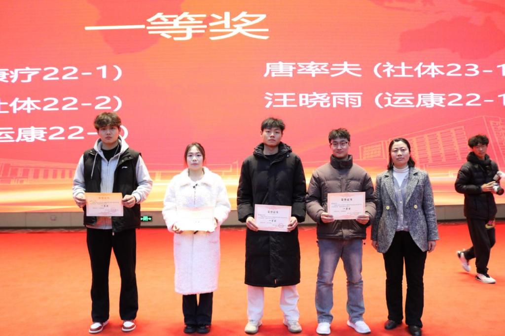 一等奖:周杰峰 (康疗22-1)、唐率夫 (社体23-1)、李宝龙 (社体22-2)、汪晓雨 (运康22-1) 、张林 (运康22-1)